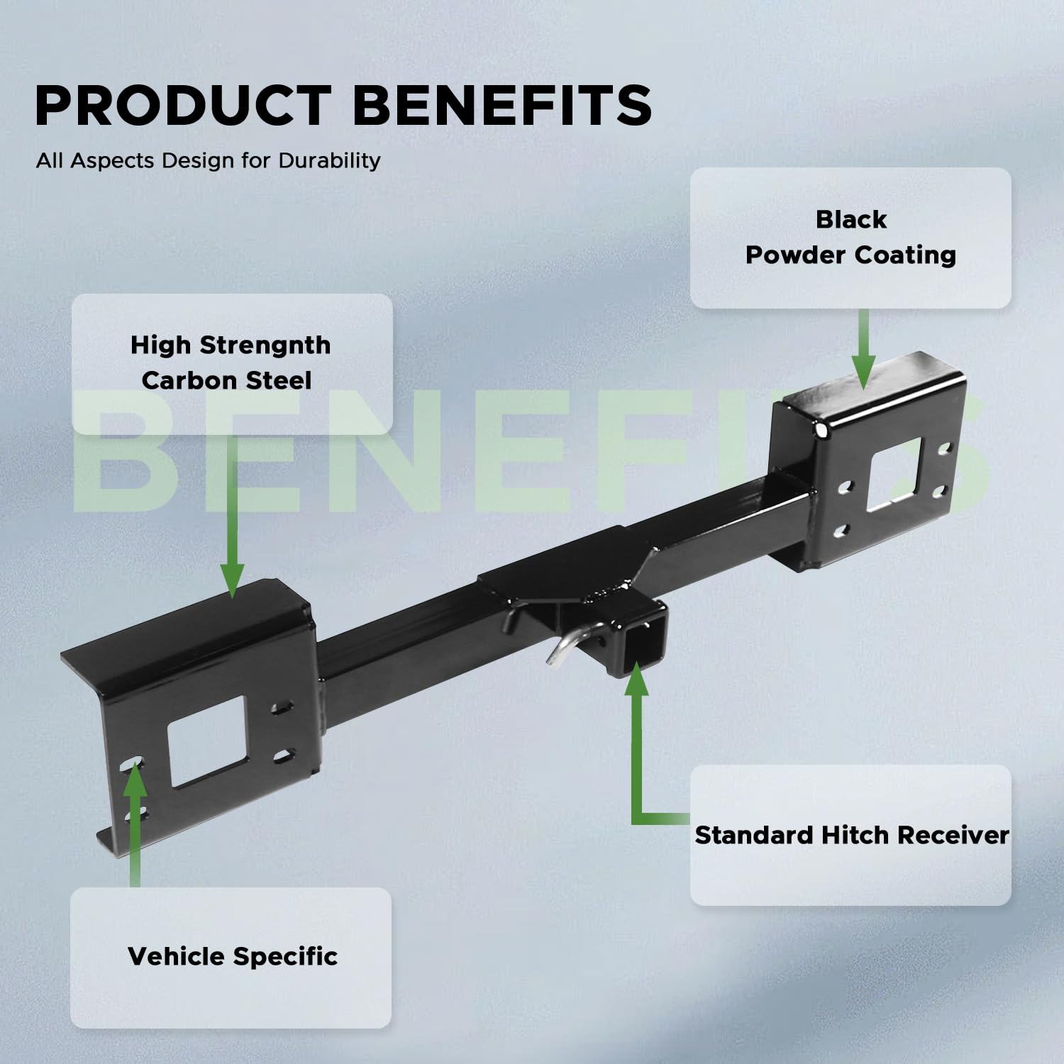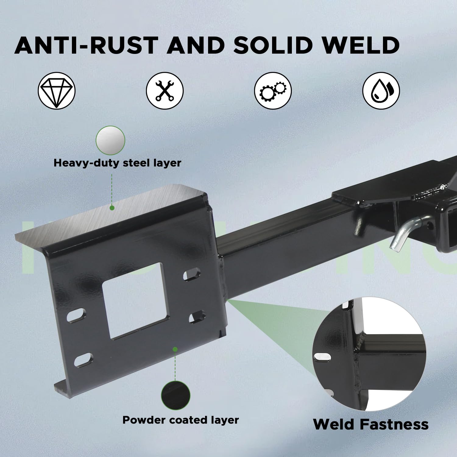 - [DURABILIDAD] Nuestro enganche de montaje frontal está equipado con un recubrimiento electroforético en polvo de ancho completo para garantizar la protección contra la oxidación. El robusto material de acero al carbono garantiza un uso prolongado.