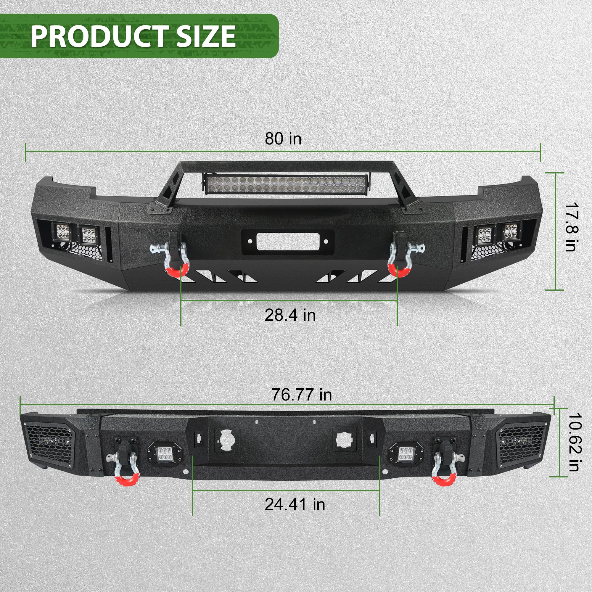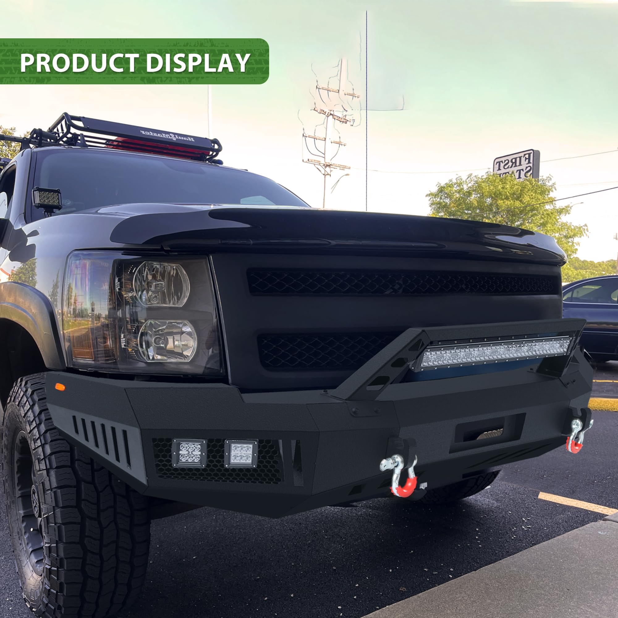 - Seguridad y durabilidad: Parachoques todoterreno compatible con Silverado 1500, equipado con 6 luces para mayor seguridad al conducir de noche. Nuestro parachoques delantero y trasero de alta resistencia está fabricado con acero al carbono Q235 y cuenta con un recubrimiento en polvo negro texturizado de dos etapas para una mayor durabilidad.