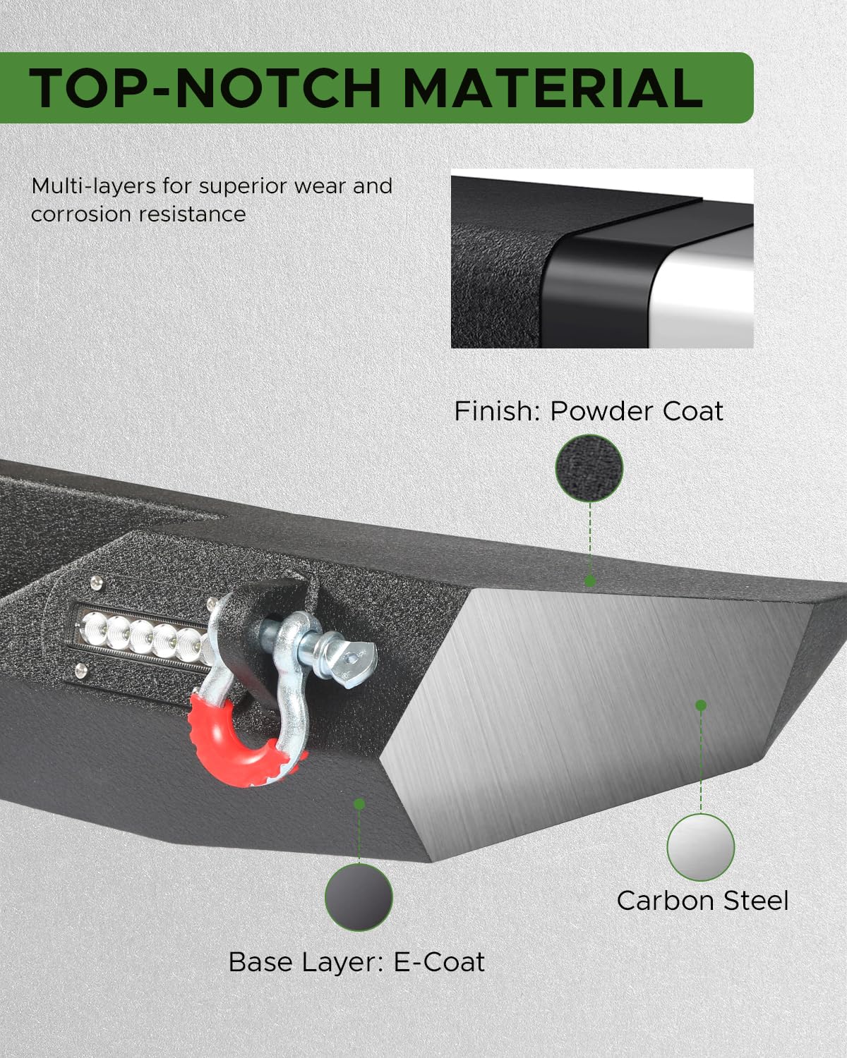 - Mejora de la apariencia del vehículo: el parachoques trasero Rock Crawler apto para Jeep Wrangler JK tiene un acabado texturizado negro clásico con recubrimiento en polvo que es resistente a la corrosión y al óxido y sin rebabas para mantener su vehículo como nuevo, una instalación simple le brindará una mejora de rendimiento y apariencia para su vehículo