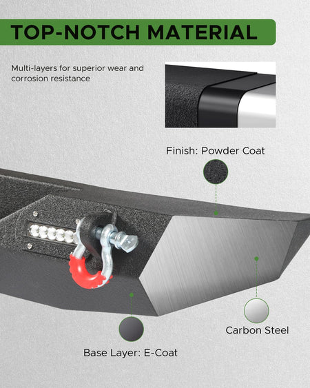 - El paquete incluye: 1 parachoques trasero todoterreno, 1 juego de herrajes de montaje, 2 anillas en D, 2 luces e instrucciones de instalación. No es necesario taladrar ni cortar el parachoques trasero; se instala directamente con pernos. Puede reemplazarlo e instalarlo usted mismo siguiendo las instrucciones paso a paso, lo que le proporciona una instalación clara y rápida.