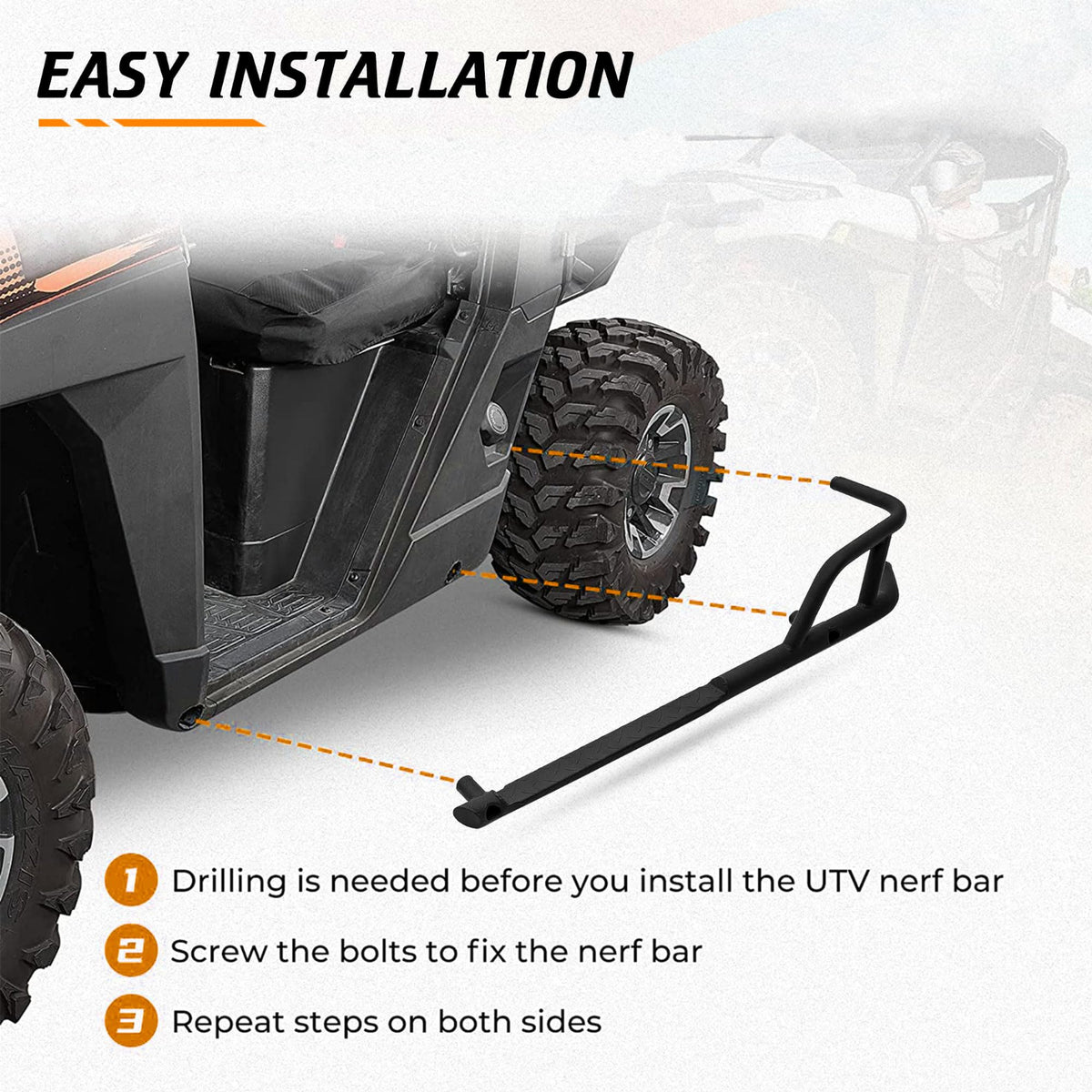 - Ajuste: Deslizadores de roca de escalón lateral compatibles con Polaris Ranger XP 1000 2018 2019 2020 2021 2022 2023 2024 2025/High Lifter Edition 2019+/Back Country Edition 2019/NorthStar Edition 2018+/Texas Edition 2020+/Trail Boss Edition 2021+