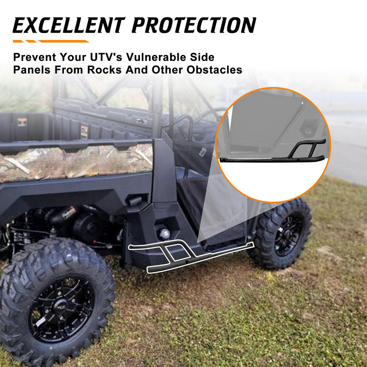 Deslizadores de estribo laterales de acero resistente para Polaris Ranger XP 1000 2018-2025. Compatibles con las ediciones High Lifter, Back Country, Northstar, Texas y Trail Boss.