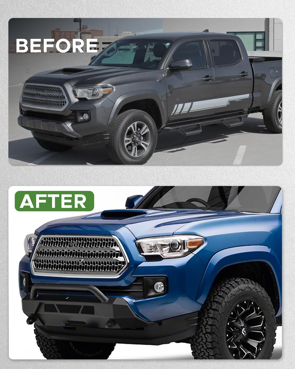 - Compatibilité : Ce pare-chocs avant avec treuil est compatible avec les Toyota Tacoma 2016 à 2023. La découpe et la mesure laser de haute précision garantissent un ajustement parfait (Remarque : Non compatible avec les capteurs de surveillance des angles morts).