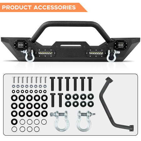 Ensemble de pare-chocs tout-terrain compatible avec Jeep Wrangler JL 2018-2026 : pare-chocs renforcés avec plaque de treuil, feux et 2 anneaux d'arrimage.