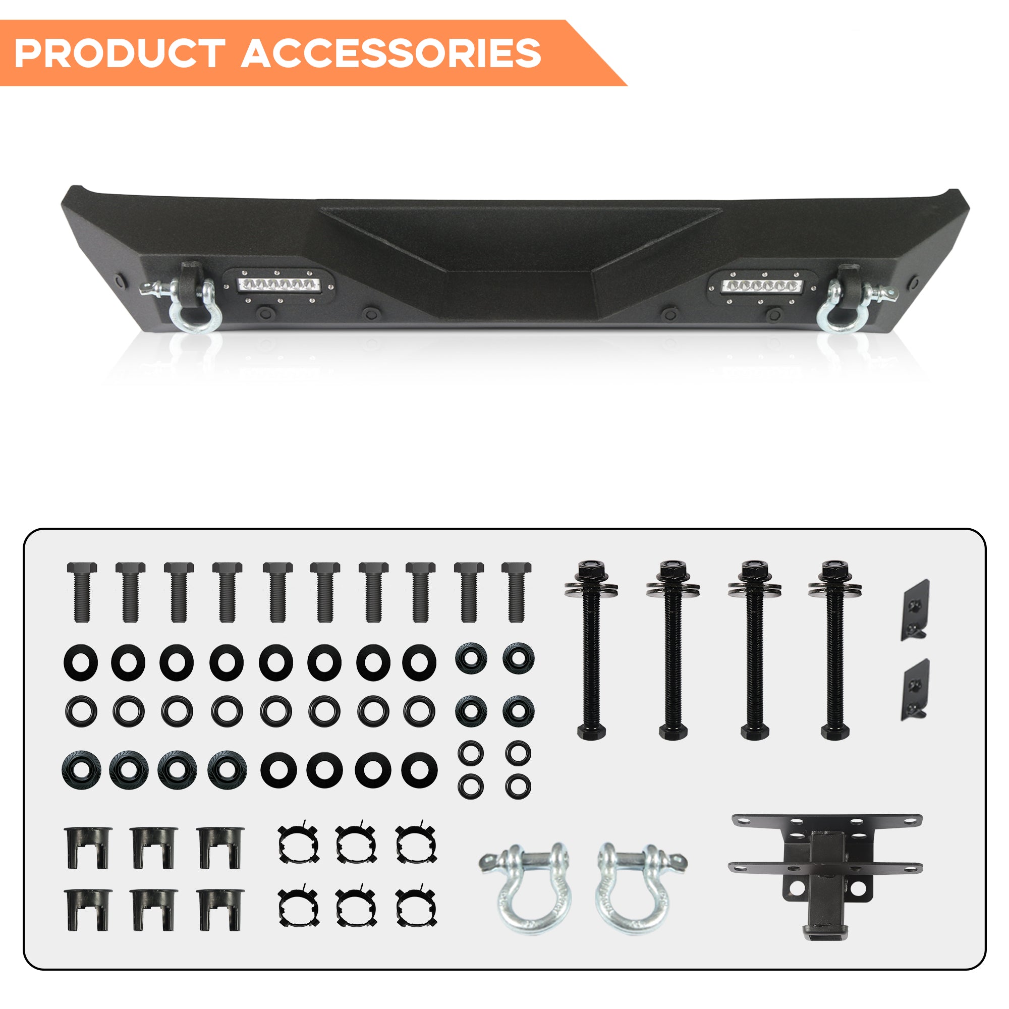 - Installation facile par boulonnage : Conçu pour une installation directe sur les pare-chocs avant et arrière du Jeep Wrangler JL, à l’aide d’outils manuels de base uniquement ; aucun perçage ni découpe n’est nécessaire pour une installation propre et simple.
