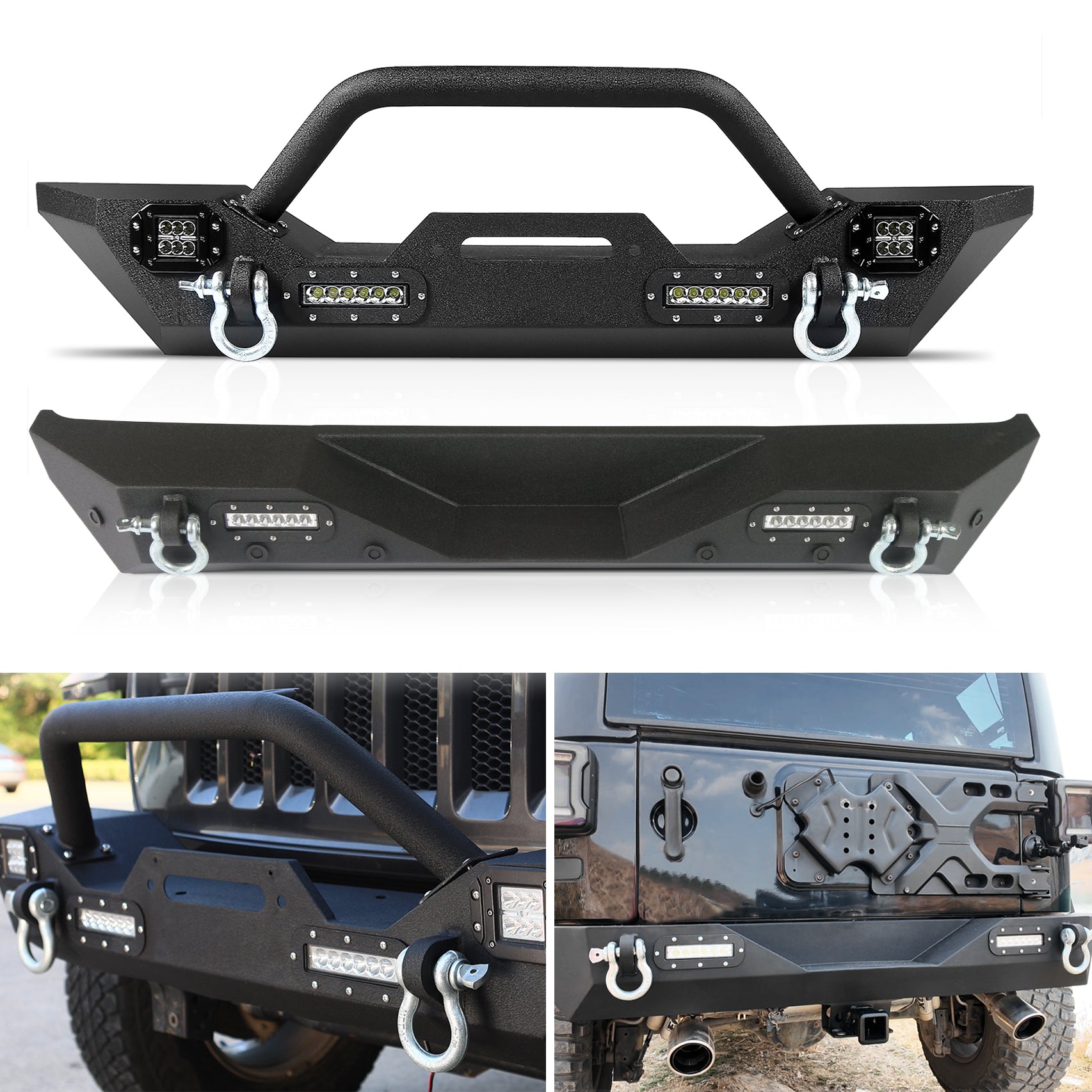 - Le kit de pare-chocs avant et arrière renforcé, compatible avec la Jeep Wrangler JL, est fabriqué en acier au carbone trempé haute résistance et recouvert d'une peinture en poudre texturée noire. Il est également prétraité pour une résistance extrême à la rouille et à l'abrasion.