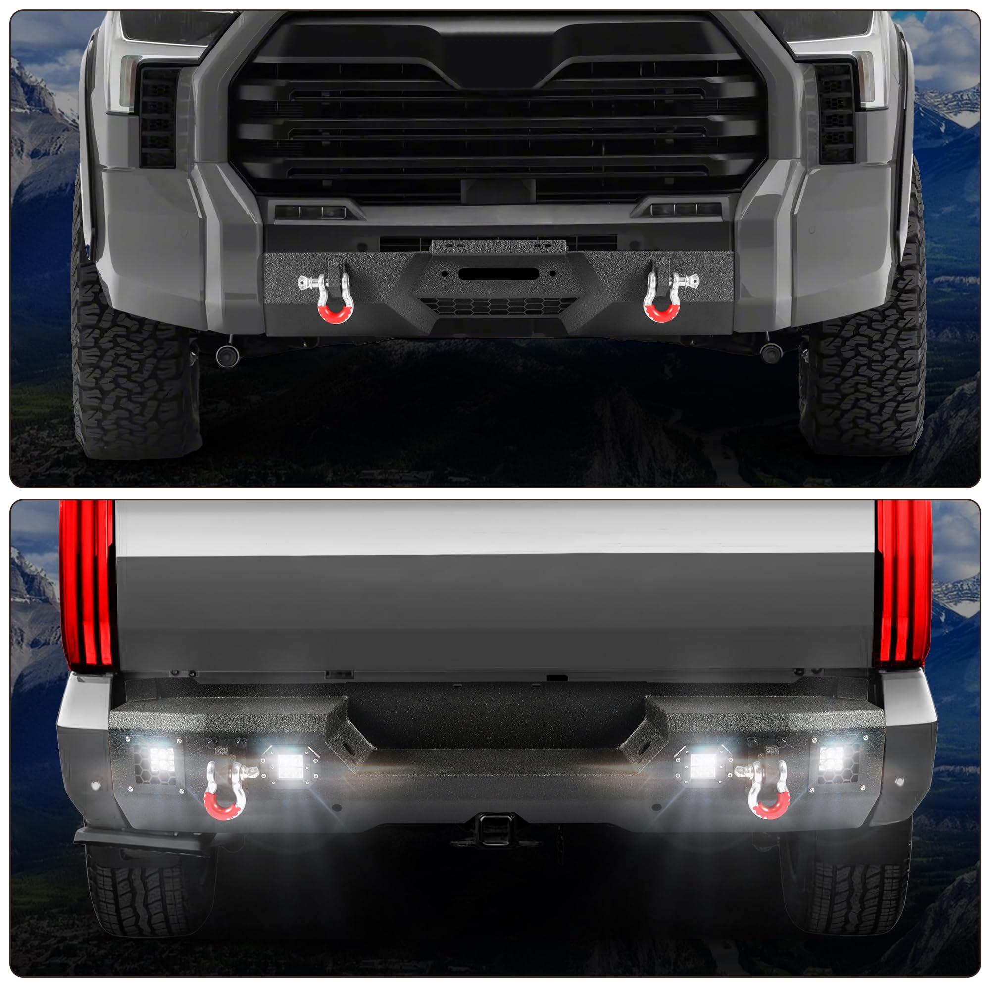 Off Road Front Rear Bumper Set Fits For Toyota Tundra 2022 2023 2024 2025 Pickup Trucks Heavy Duty Steel Rock Crawler Full-Width Bumper Combo with Winch Plate Lights D-Rings Sensor Holes