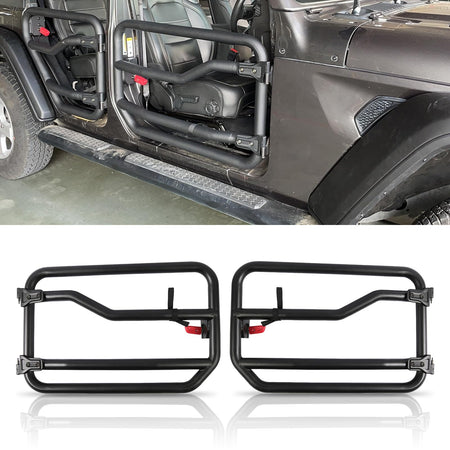 Demi-portes tubulaires tout-terrain compatibles avec Jeep Gladiator JT 2020-2025 et Jeep Wrangler JL 2018-2025 ; protections de demi-portes tubulaires (2 demi-portes tubulaires avant).