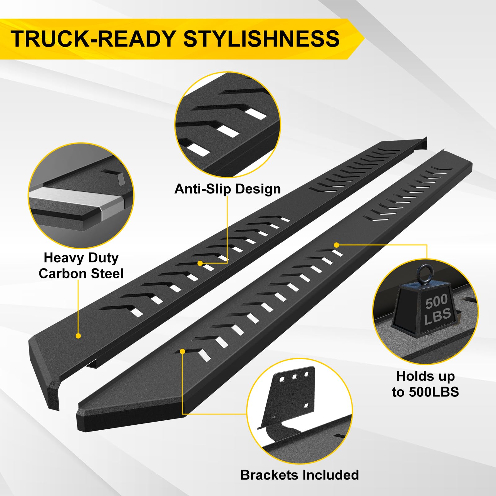 - Construction robuste : Les marchepieds pour Dodge Ram 1500 à cabine double offrent une surface d’appui confortable de 15 cm de large, facilitant l’accès au véhicule. Le revêtement en poudre noir texturé leur confère une allure élégante et une protection contre la rouille et la corrosion, tout en offrant une protection supplémentaire à votre camionnette. Ils peuvent supporter jusqu’à 227 kg.