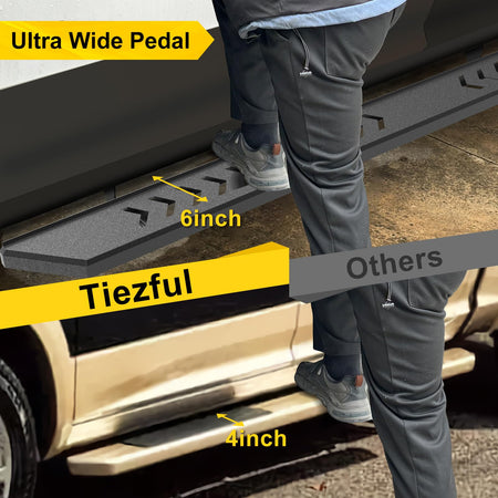 - Conception innovante : Afin de garantir que nos marchepieds facilitent l’accès au véhicule pour votre famille et soient également fonctionnels en tout-terrain, nous avons repensé et amélioré les supports de marchepied sans trop réduire la garde au sol.