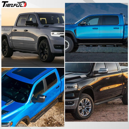 - Marchepieds compatibles avec le Dodge Ram 1500 (nouvelle carrosserie) : Ces marchepieds sont compatibles avec le Dodge Ram 1500 Crew Cab (nouvelle carrosserie) 4 portes (modèles 2019 à 2026). (Uniquement compatible avec la nouvelle carrosserie, non compatible avec le modèle Classic). Veuillez vérifier attentivement les dimensions de la cabine avant l'achat.