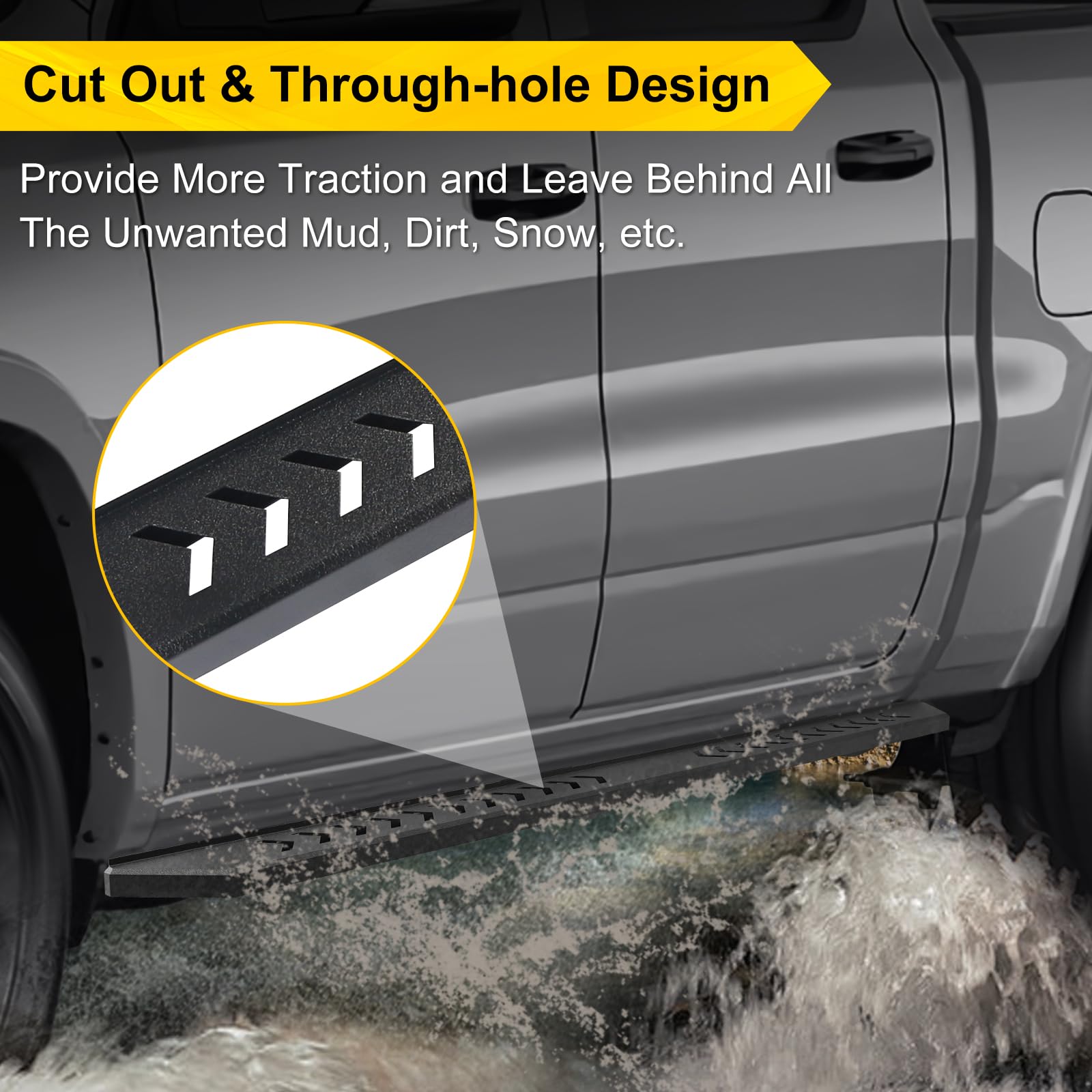 - Garde votre cabine propre et rangée : les marchepieds latéraux pour Dodge Ram 1500 à cabine double adoptent une conception découpée et une configuration à trous traversants, offrant une meilleure adhérence et évacuant la boue, la saleté, la neige, etc., pour un plancher et une cabine plus propres.
