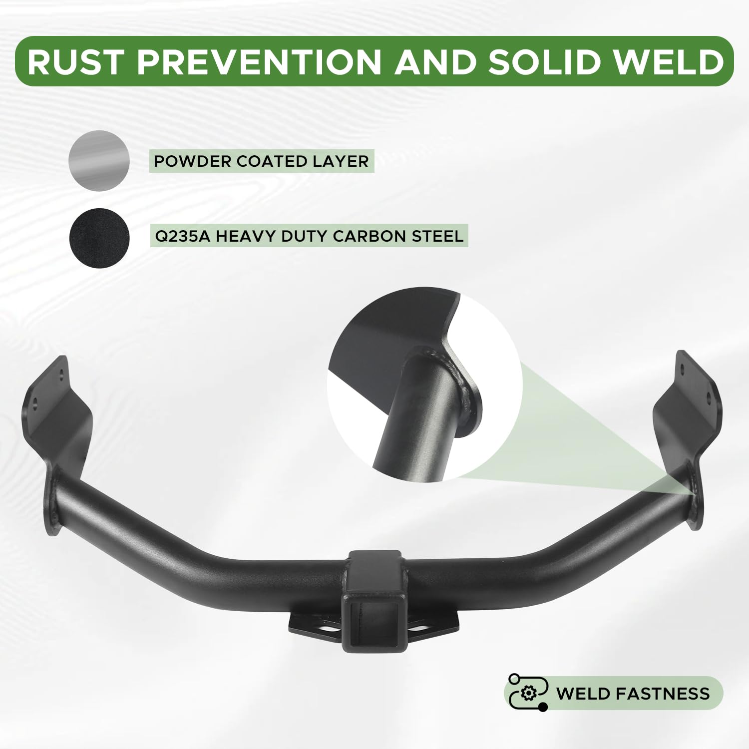 - Installation sans perçage : boulon de fixation pour récepteur d’attelage. Instructions d’installation du récepteur d’attelage incluses.