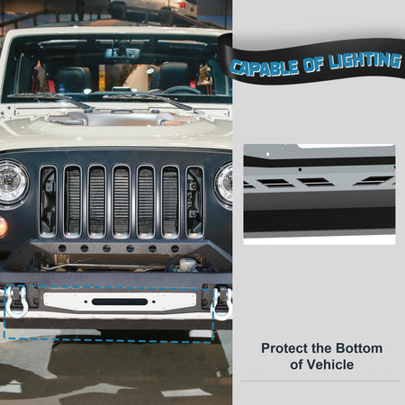 Front Bumper Fit for Jeep Wrangler JK JKU 2007-2018, DIY Painting Heavy Duty Steel Front Bumper w/Winch Plate Skid Plate 4 Lights 2 D-Rings