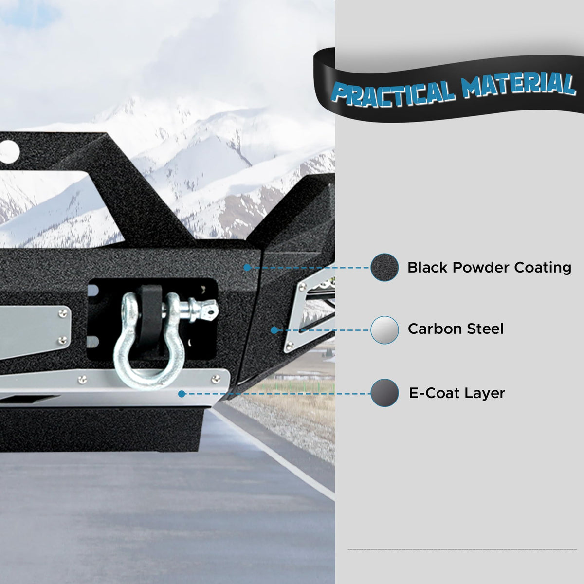 - DIY Painting: The silver tone panels can be freely painted to match the vehicle color for a dazzling look. The two-stage textured black powder pre-coated surface is smooth, wear-resistant and rust-resistant, giving the bumper a long-lasting beauty