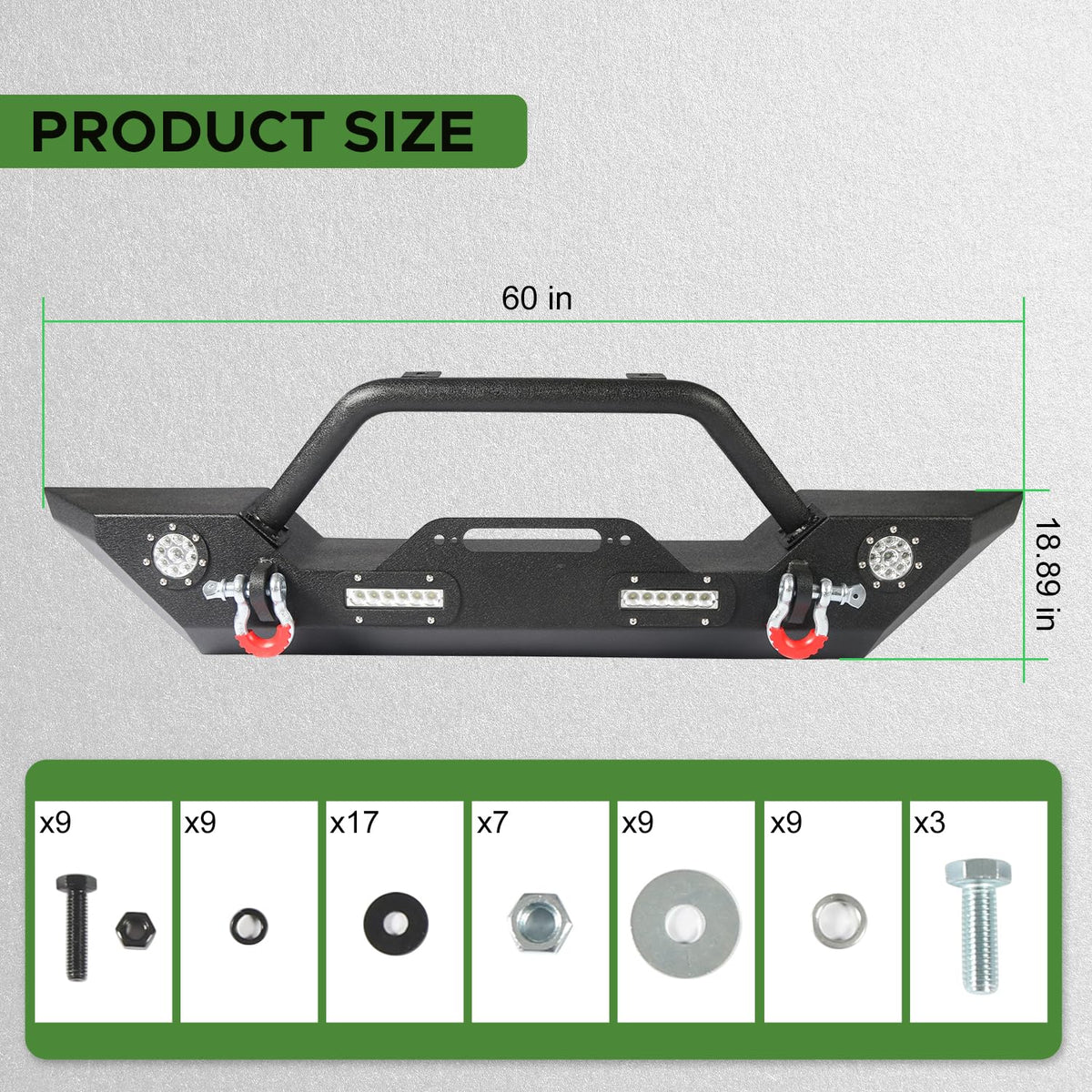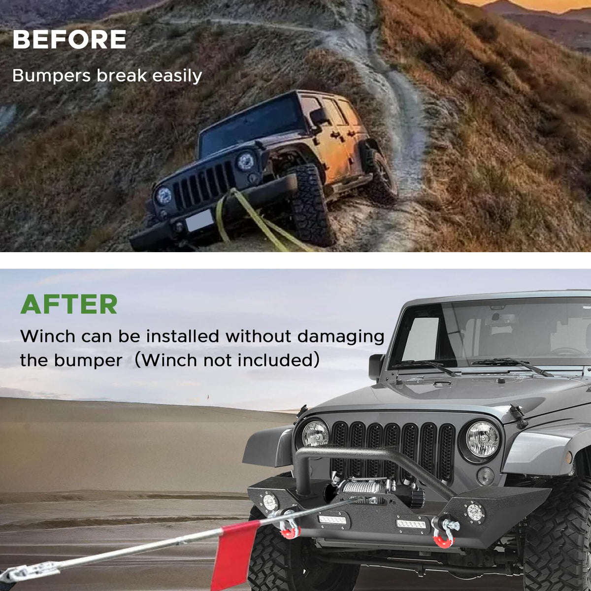 - Fitment: This off road front and rear bumper set fit for Jeep Wrangler JK 2007 2008 2009 2010 2011 2012 2013 2014 2015 2016 2017 2018.Please confirm your vehicle information before ordering